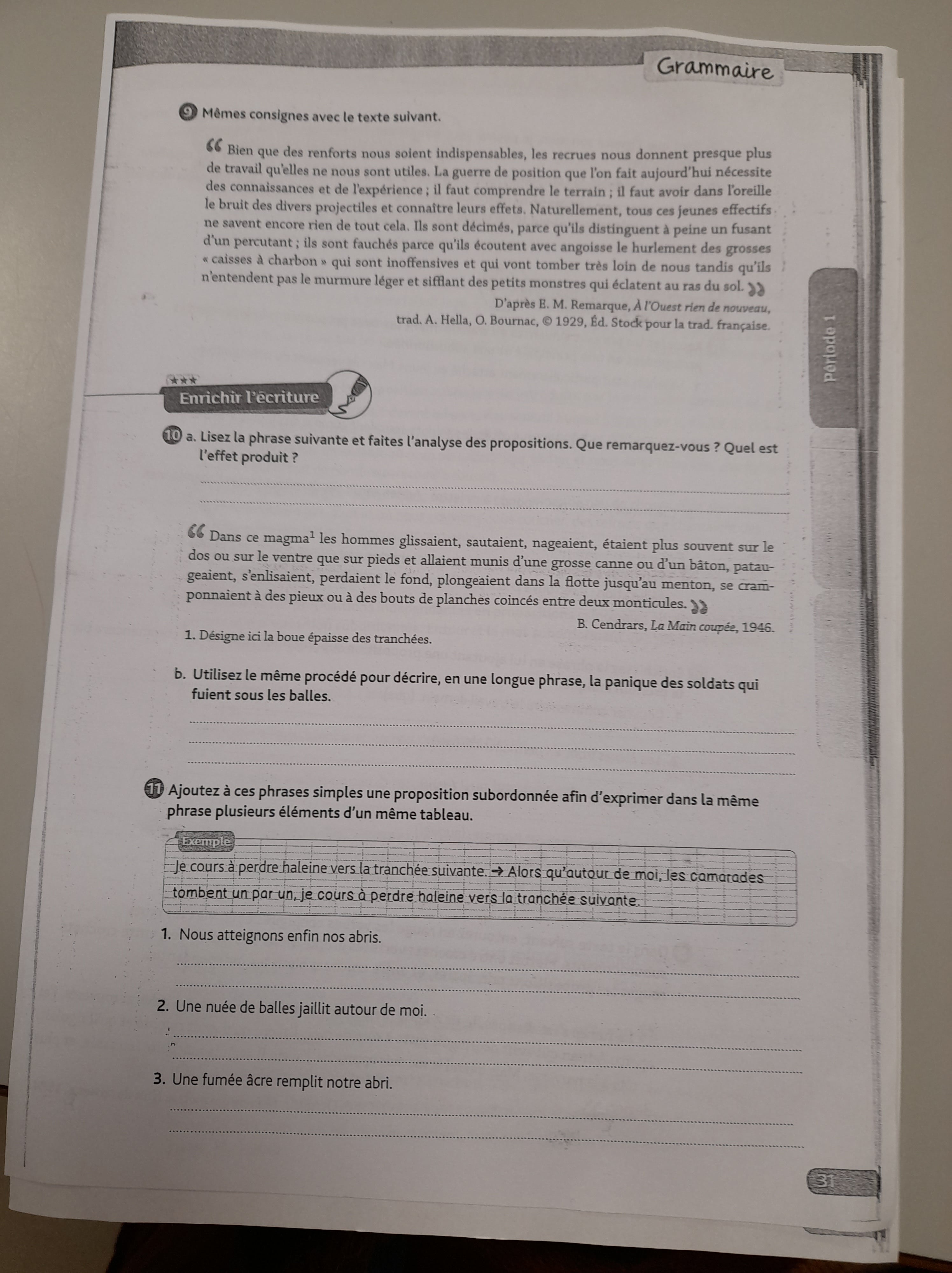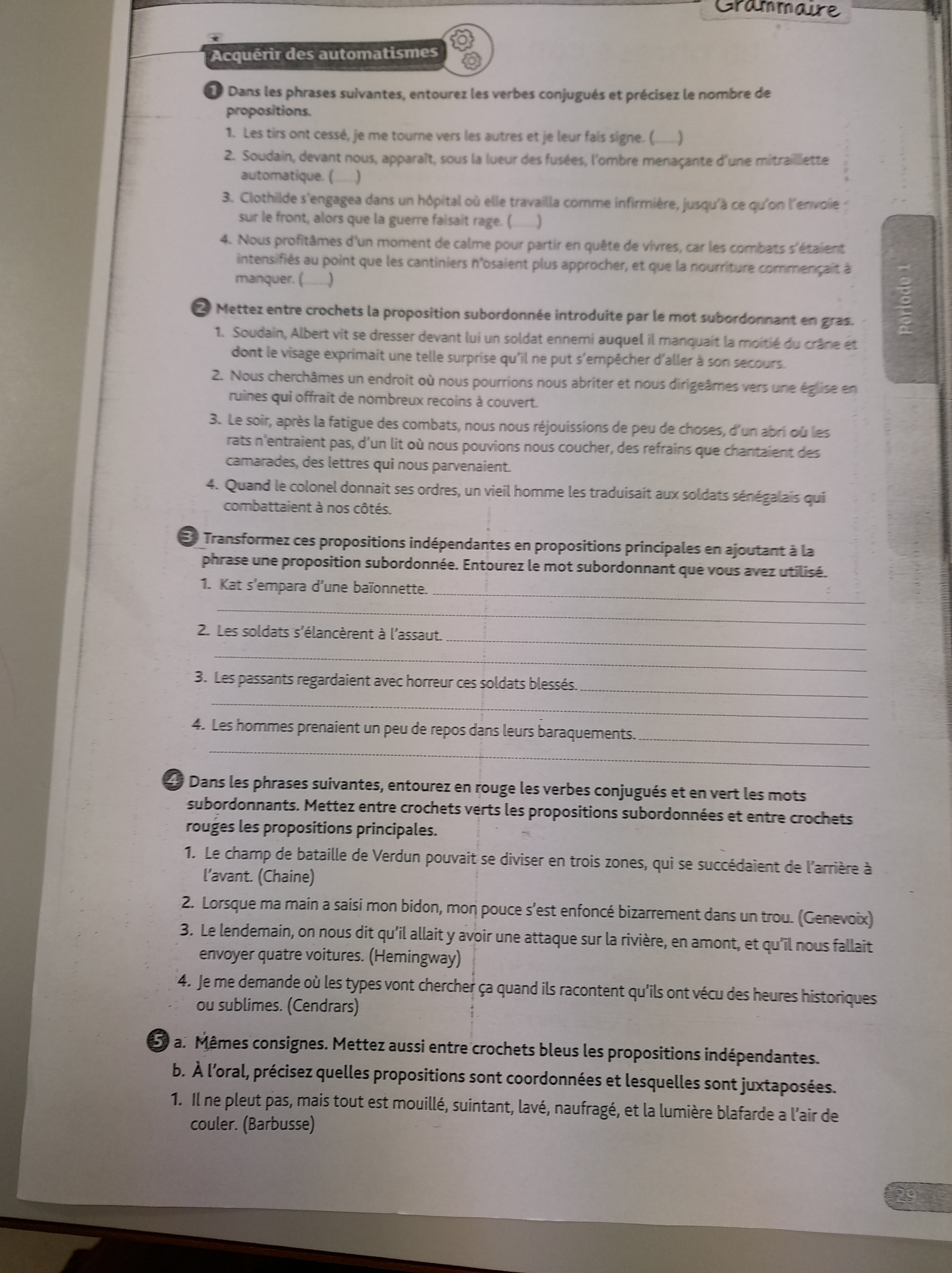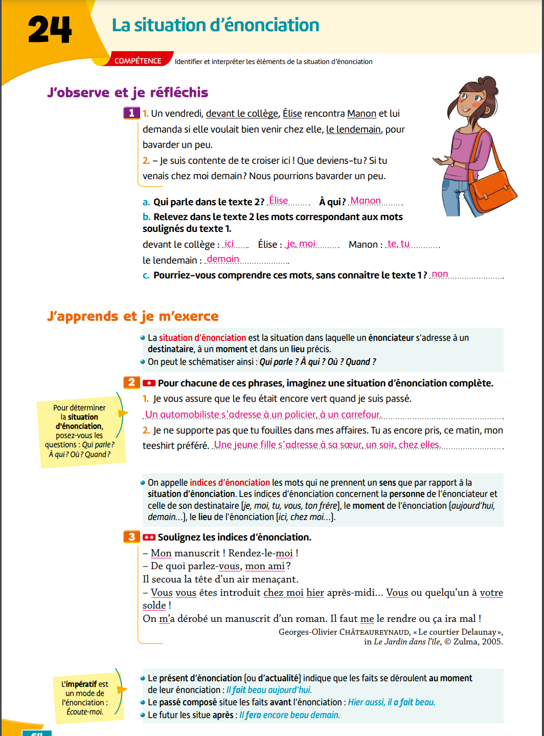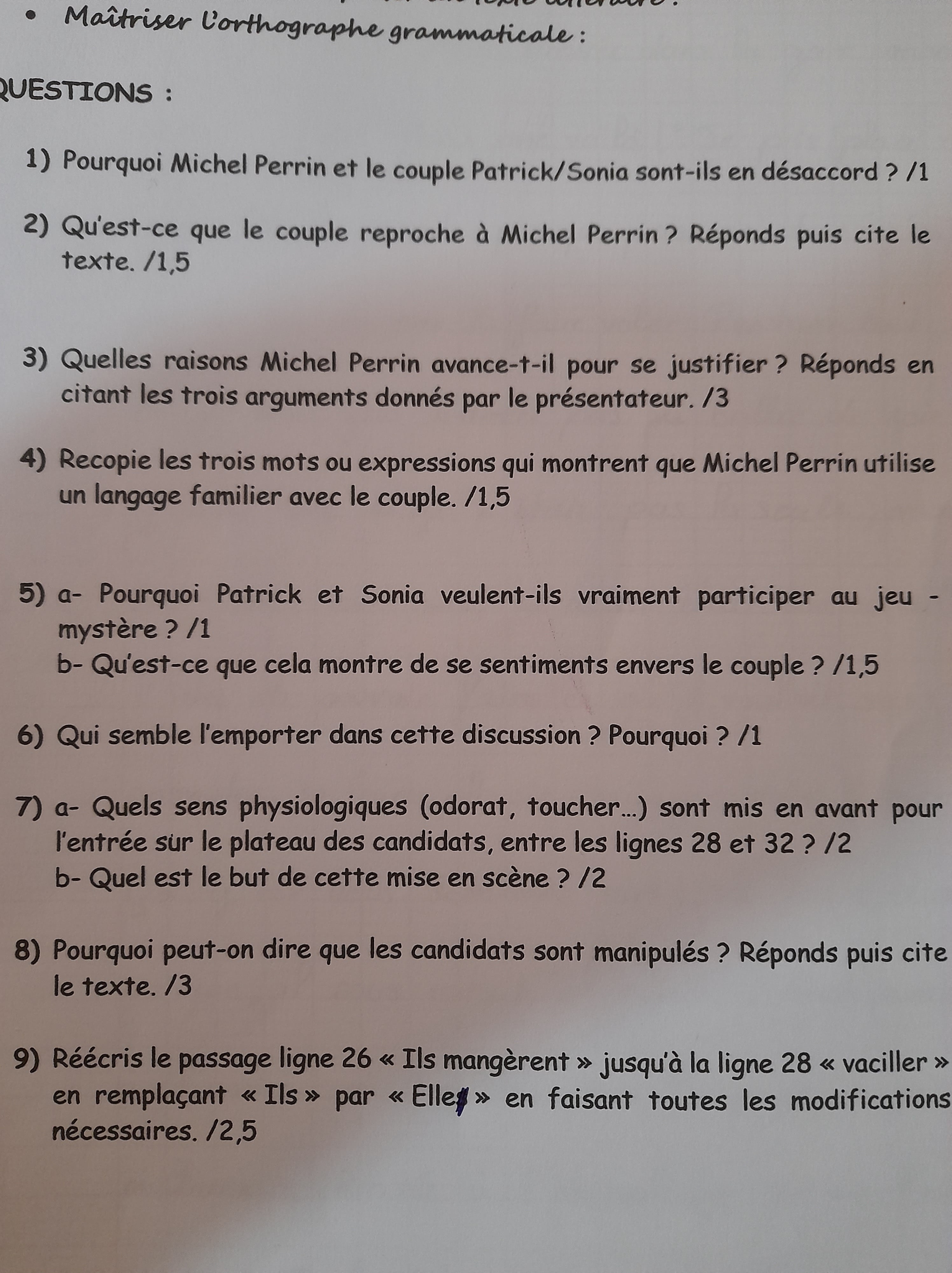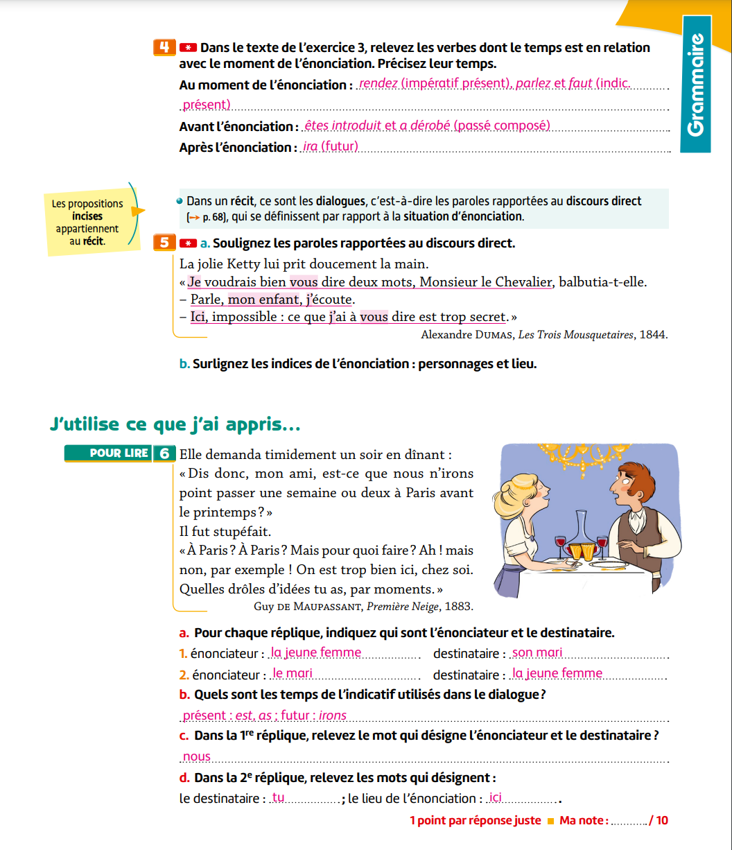 • la pratique la maîtrise et l’analyse de la langue française (grammaire, orthographe, lexique )