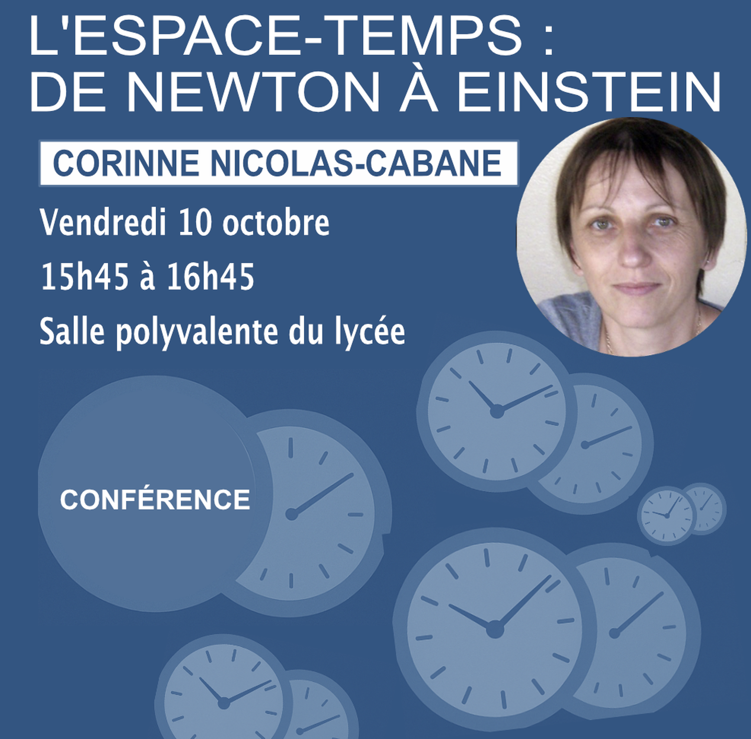 Une chercheuse, Corinne NICOLAS-CABANE, viendra présenter une conférence sur la mesure du temps vendredi 10/10 de 15h45 à 16h45 en salle polyvalente du lycée.