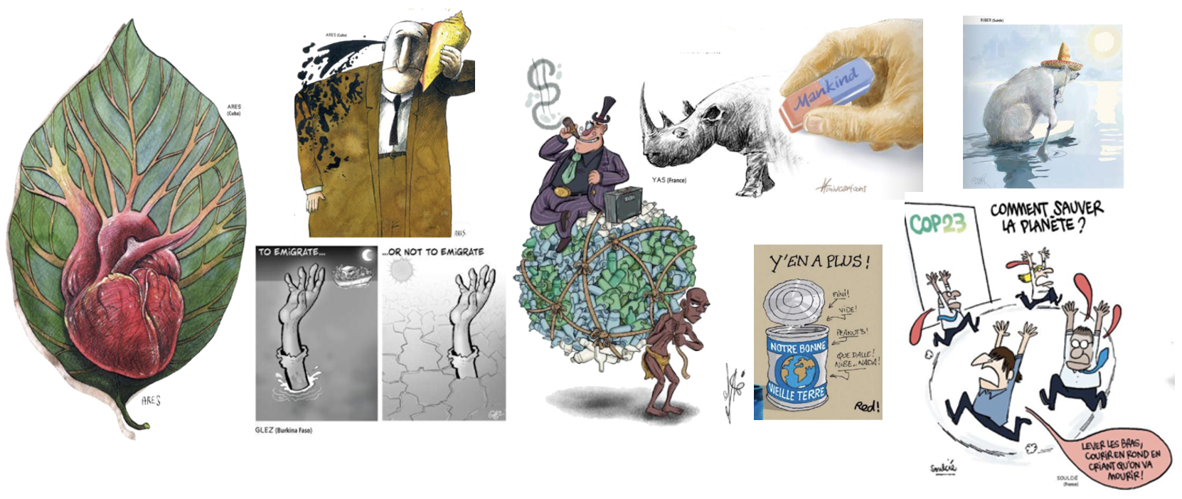 Fondée par le dessinateur Plantu, Cartooning for Peace est un réseau international de dessinateurs engagés dans des causes sociétales majeures. Avec cette exposition, l’association réaffirme son engagement dans la lutte contre le dérèglement climatique tout en répondant aux besoins éducatifs exprimés par les enseignants. En mettant en lumière des problématiques telles que le réchauffement climatique ou la raréfaction des ressources naturelles, elle invite chacun à réfléchir sur son rôle dans la préservation de notre planète.